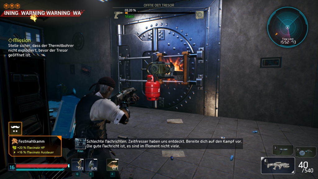 Kurzerhand wurde die Hinterkammer der eigenen Pizzeria zur Operationsbasis umfunktioniert mit einem eigenen Missionspad sowie Missionsplanungstisch. Mit dem Abschluss mehrerer Missionen werden wir weitere Areale freischalten können und erhalten mit jedem erfolgreichen Abschluss Erfahrungspunkte für den eigenen Charakter. Die Anzahl der Missionen ist allerdings noch recht begrenzt, sind aber unterschiedlich aufgebaut, um Abwechslung in die Szenerie zu bringen. Entweder allein oder mit drei weiteren Spielern können wir nun den Mix aus Overcooked erleben. In manchen Missionen müssen wir lediglich Dinge, wie einen alten Sarkophag oder ein Buch aus einem Safe klauen, den wir vorher aufknacken müssen. Andere Missionen wiederum werden eine Verschmelzung aus Overcooked und PvE Shooter darstellen.
