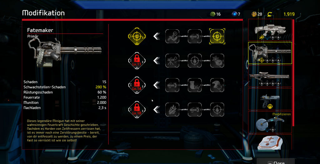 Dafür gefällt mir mehr die Auswahl der verfügbaren Waffen und dass man diese noch einmal spezialisieren kann. In Zusammenarbeit mit mehreren Spielern kann man sich somit untereinander abstimmen, um noch effizienter agieren zu können.